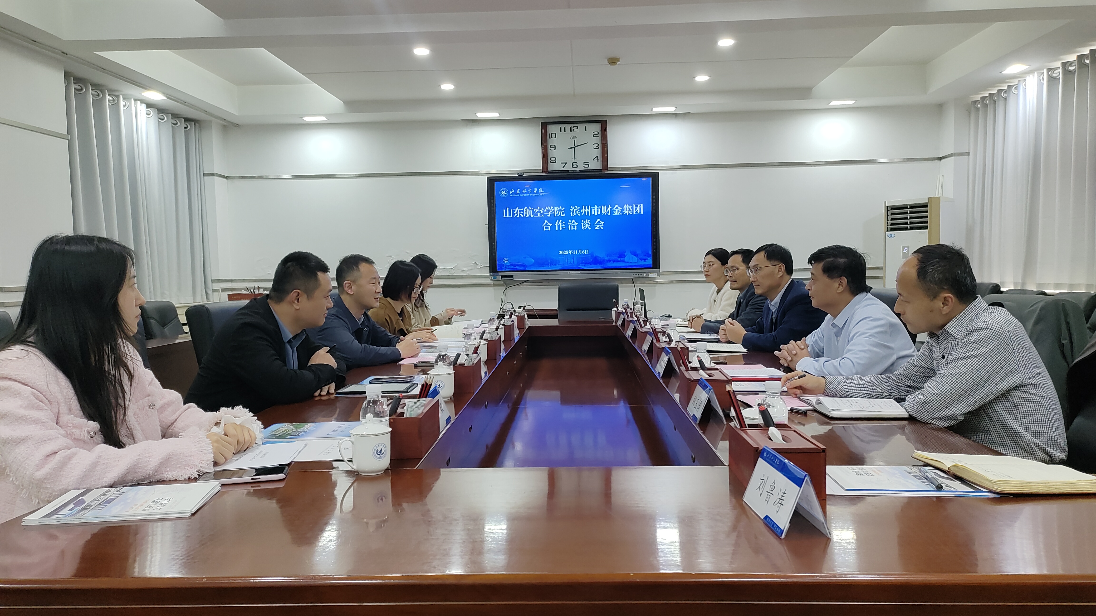 办公室负责人对慕术鹏一行的到来表示热烈欢迎,并从学校办学历史、办学思路、学科专业特色、服务面向定位以及中长期发展规划等方面介绍了学校基本情况。合作发展处负责人介绍了学校社会服务工作开展情况。他表示,学校始终坚持以服务地方经济社会发展为己任,高度重视与滨州市企业的深度合作,希望双方进一步加强沟通交流,在科研平台共建、项目联合攻关、人才共享共用和研究生联合培养等领域建立实质性合作关系,通过加强校企联动,促进资源互补,实现共同发展。